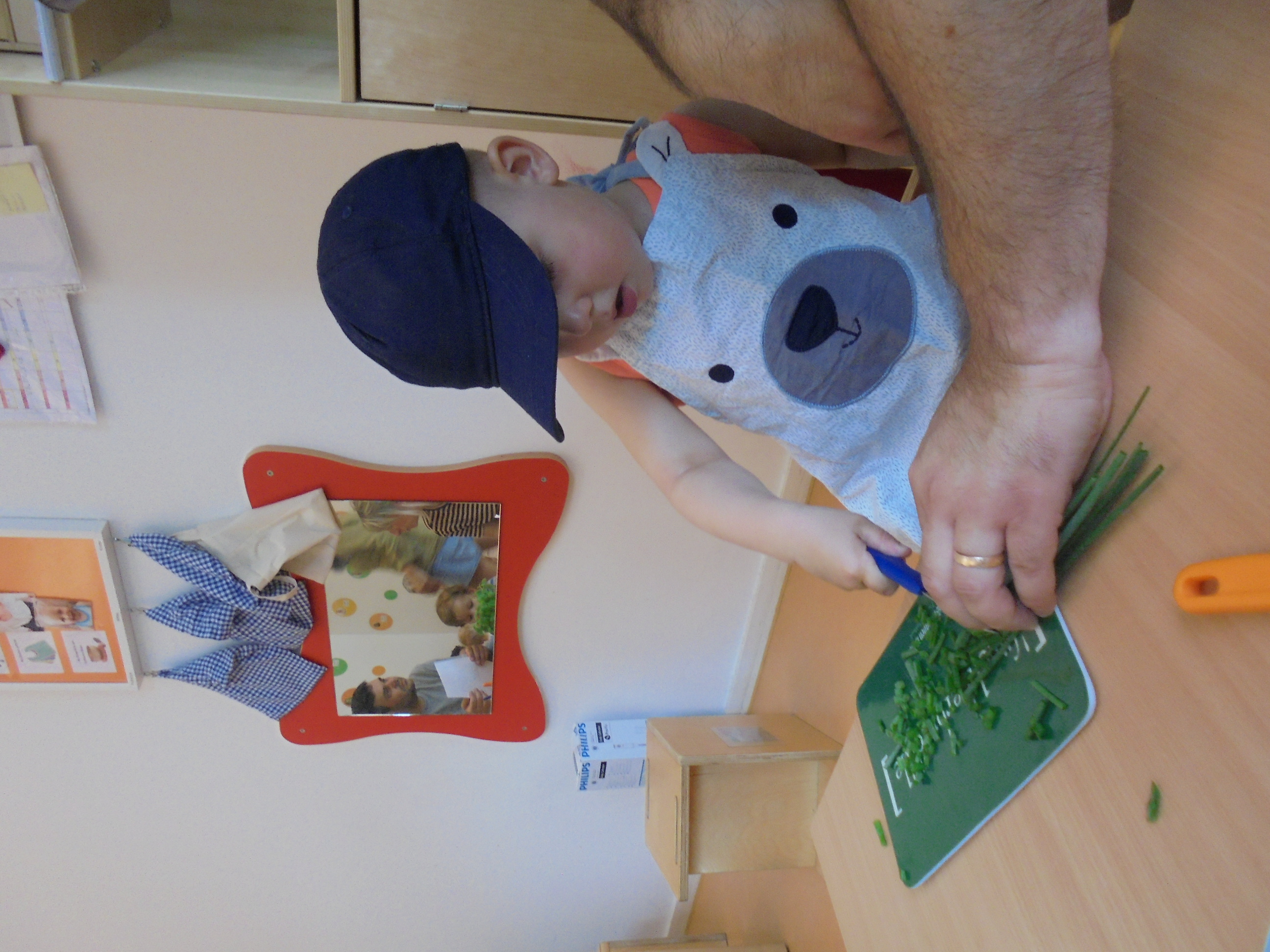 Am 27.06.2025 fand ein BeKi- Aktionsnachmittag statt. BeKi steht für "Bewusste Kinderernährung“ und ist eine Initiative des Landes BW. Gerade sind wir im Prozess der 2. Re- Zertifizierung. In diesem Rahmen waren die Eltern eingeladen an einem Fachvortrag der Ernährungswissenschaftlerin Sigrid Fellmeth zum Thema „Esstypen bei Kindern“ und „Schneidetechniken für Krippenkinder“ teilzunehmen. Im Anschluss gab es drei Aktionen, bei denen die Kinder mit ihren Eltern kleine Snacks zubereiteten. Apfelscheiben mit Topping, Smoothies und vegetarische Brotaufstriche standen auf dem Programm. Zum Verspeisen der selbstgemachten Köstlichkeiten lud der Vorstand des Krabbelkäfervereins zu einem gemütlichen Beisammensein im Garten ein. Es war ein schöner und informativer Nachmittag. Weitere Infos zum Thema „BeKi“ finden Sie auf unserer Homepage unter Kinderkrippe --> Pädagogisches- Konzept --> Ernährungskonzept