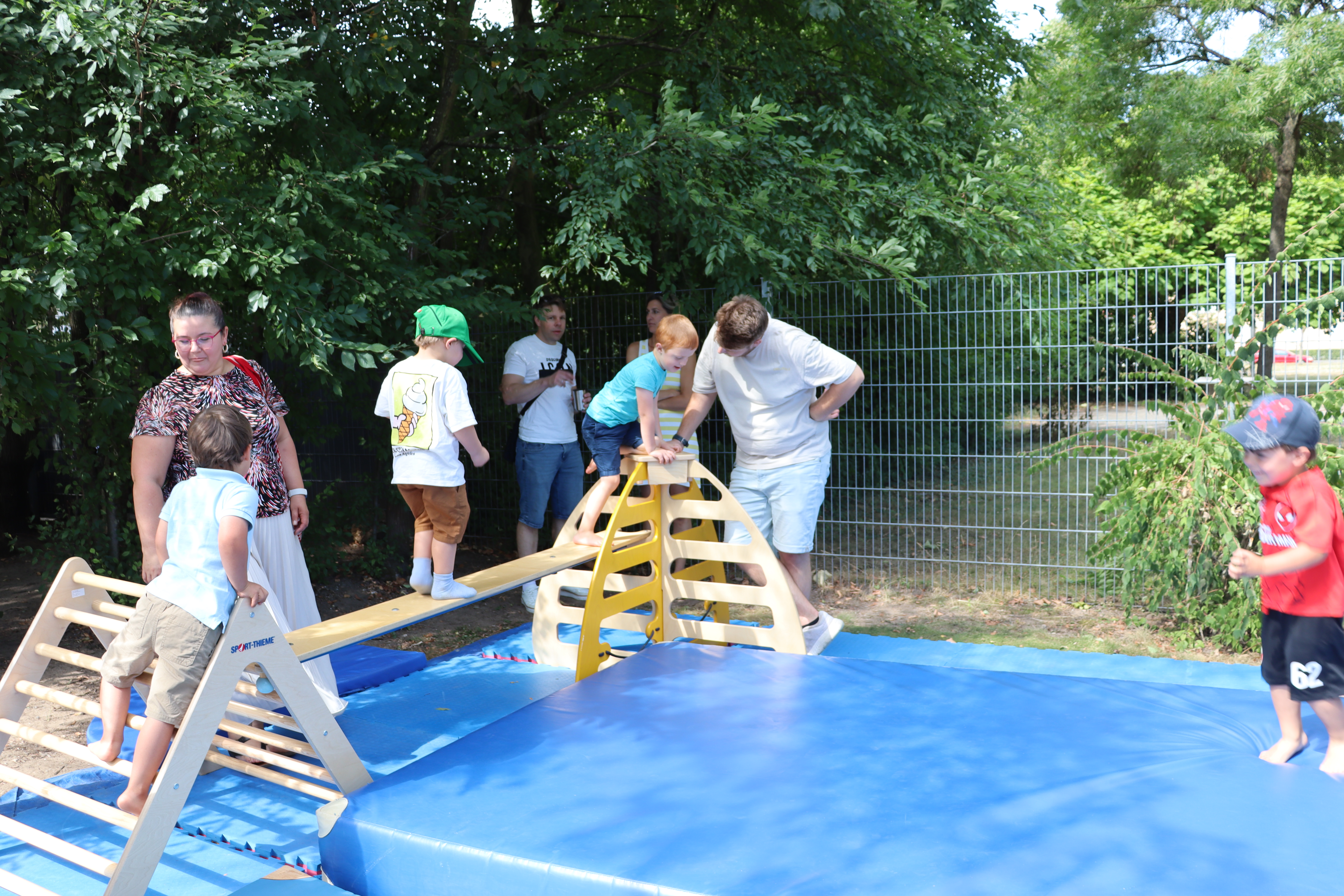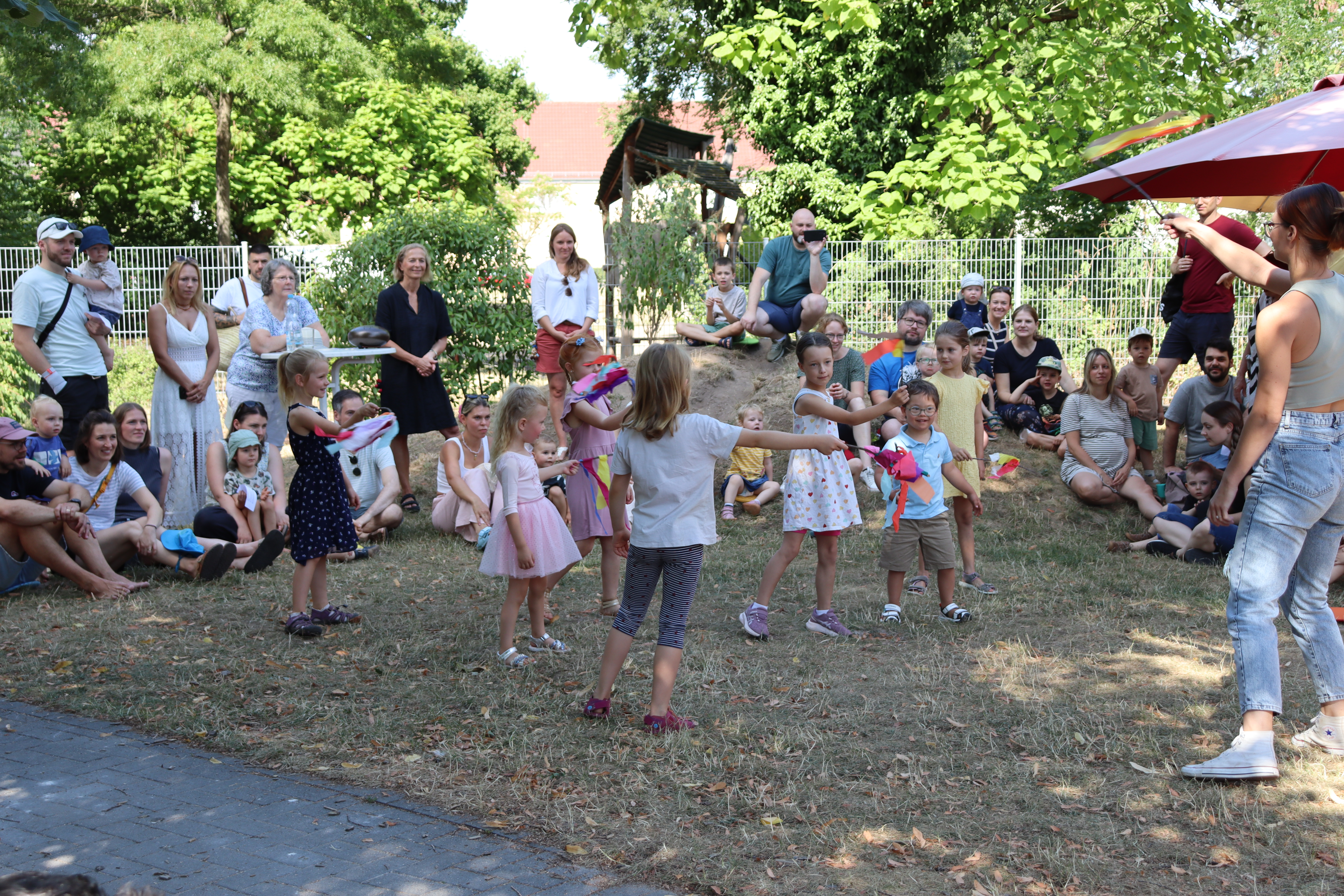 Am 19.07.2025 fand unser Sommerfest statt. Es war schön bei strahlendem Sonnenschein viele aktuelle, ehemalige und neue Krabbelkäfer- Familien begrüßen zu dürfen. Ein besonderes Highlight gleich zu Beginn war ein Tanz der Kindergartenkinder mit dem Thema „Ich bin stark“. Nach einem schönen Begrüßungskreis gab es ein leckeres Mitbring- Buffet und der Vorstand organisierte auch in diesem Jahr wieder einen Eiswagen. Im Laufe des Vormittags konnten die Kinder an vielen Aktionen teilnehmen. Ein Schattenspiel, matschen mit Ton und Heilerde, experimentieren mit Wasser, ein Bewegungsparcours, Kreativstationen und eine Leseecke wurden angeboten. Es war wieder ein sehr schöner Vormittag.