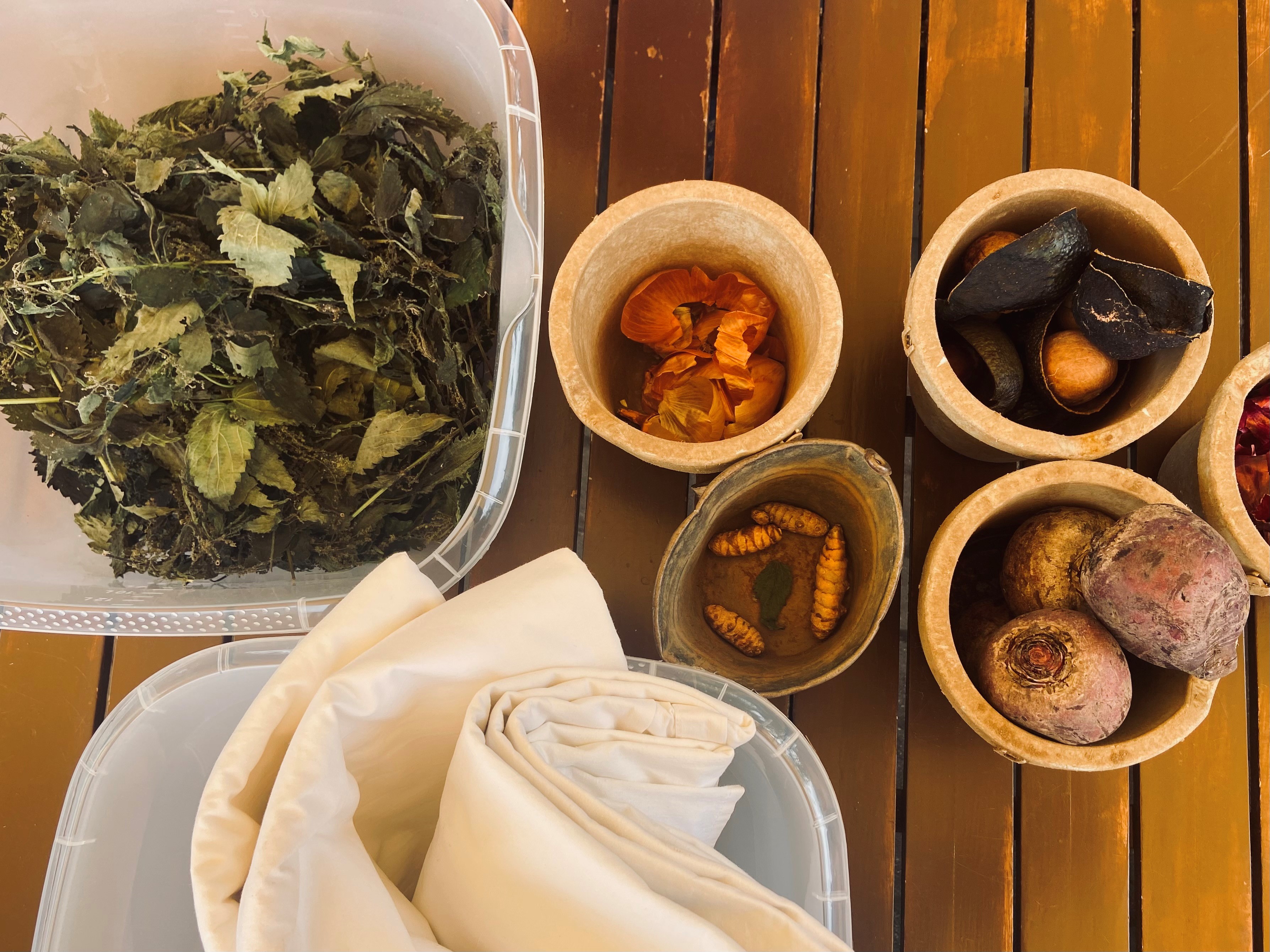 Färben von Baumwolltüchern mit Naturmaterialien im Naturkindergarten